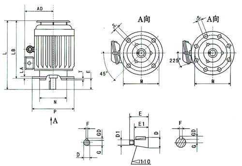 3.6驅(qū)動類型:電機(jī)設(shè)計(jì)用于聯(lián)軸器或正齒輪驅(qū)動。使用正齒輪傳動時(shí),小齒輪的節(jié)距直徑不應(yīng)小于軸延伸部分的兩倍
